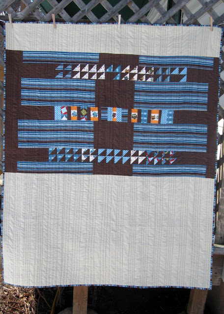 This quilt was just going to be ours and unlisted if i thought it was too terrible. Once I finished quilting it though, it became both cute and masculine! The owls certainly make it for younger boys but the brown and quilting really made it quite manly (if i do say so myself).